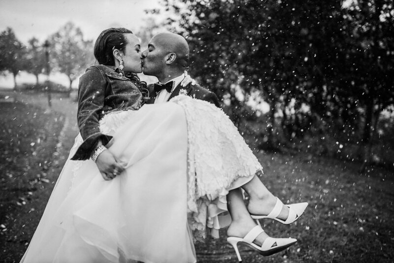One of the most frequently asked questions that we receive during wedding season is “Soooo, what do you do if it RAINS?!”. We want to reassure you that even if it rains, you will still have beautiful portraits and BRIGHT colors in your images! Overcast skies mean vibrant colors! I know that rain isn’t ideal, and no bride would wish for rain on their big day, but if it happens, it happens..... and it’s going to be JUST fine!! Some of our best weddings have been on rainy or Snowy wedding days! Here are a few things to remember: